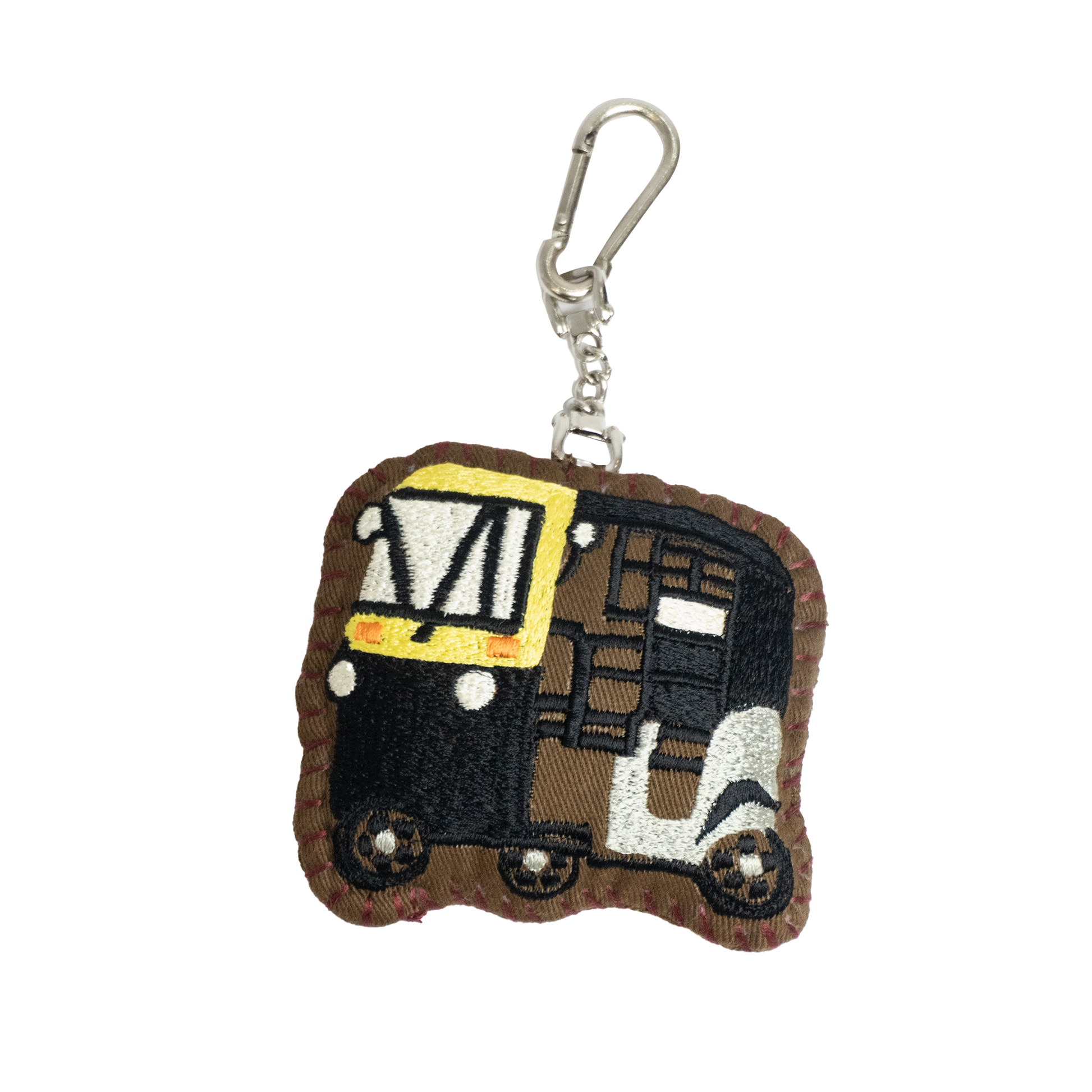 Made to resemble a rickshaw straight from the streets of Mumbai, made using 100% cotton canvas base, machine-embroidered using 100% cotton thread, with stainless steel hardware to ensure rust protection and longevity, this charm adds a pop that completes any bag or outfit.