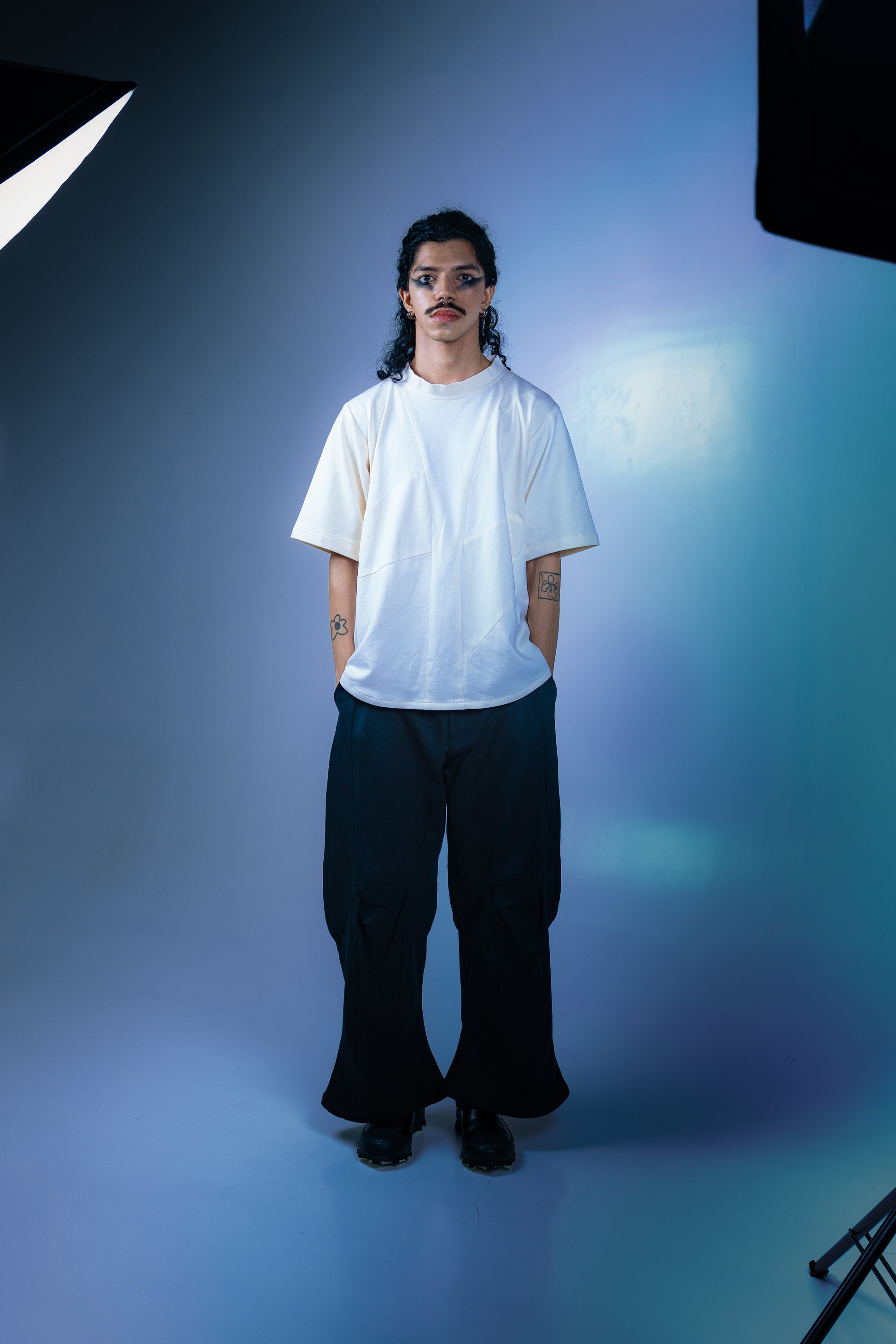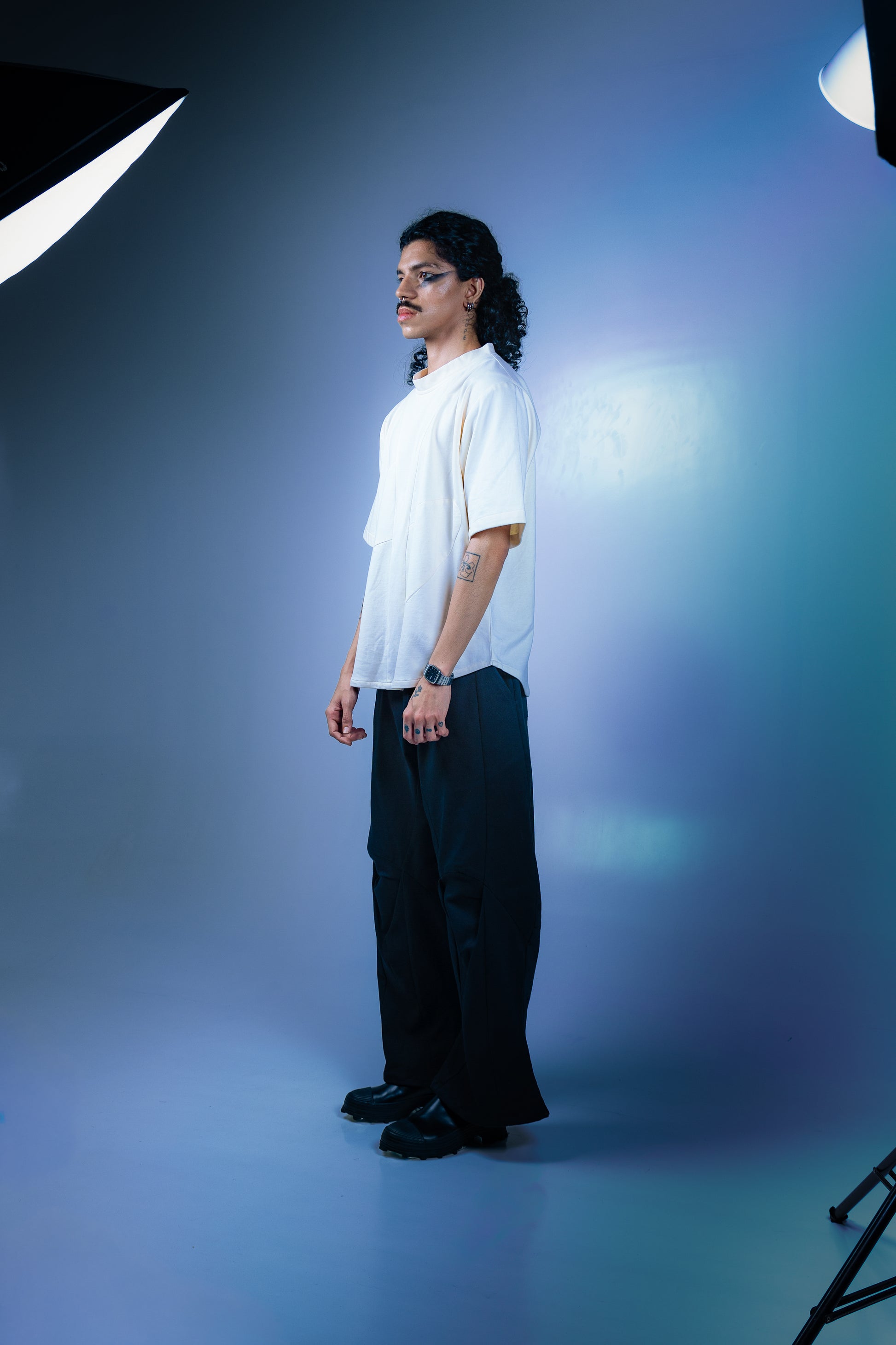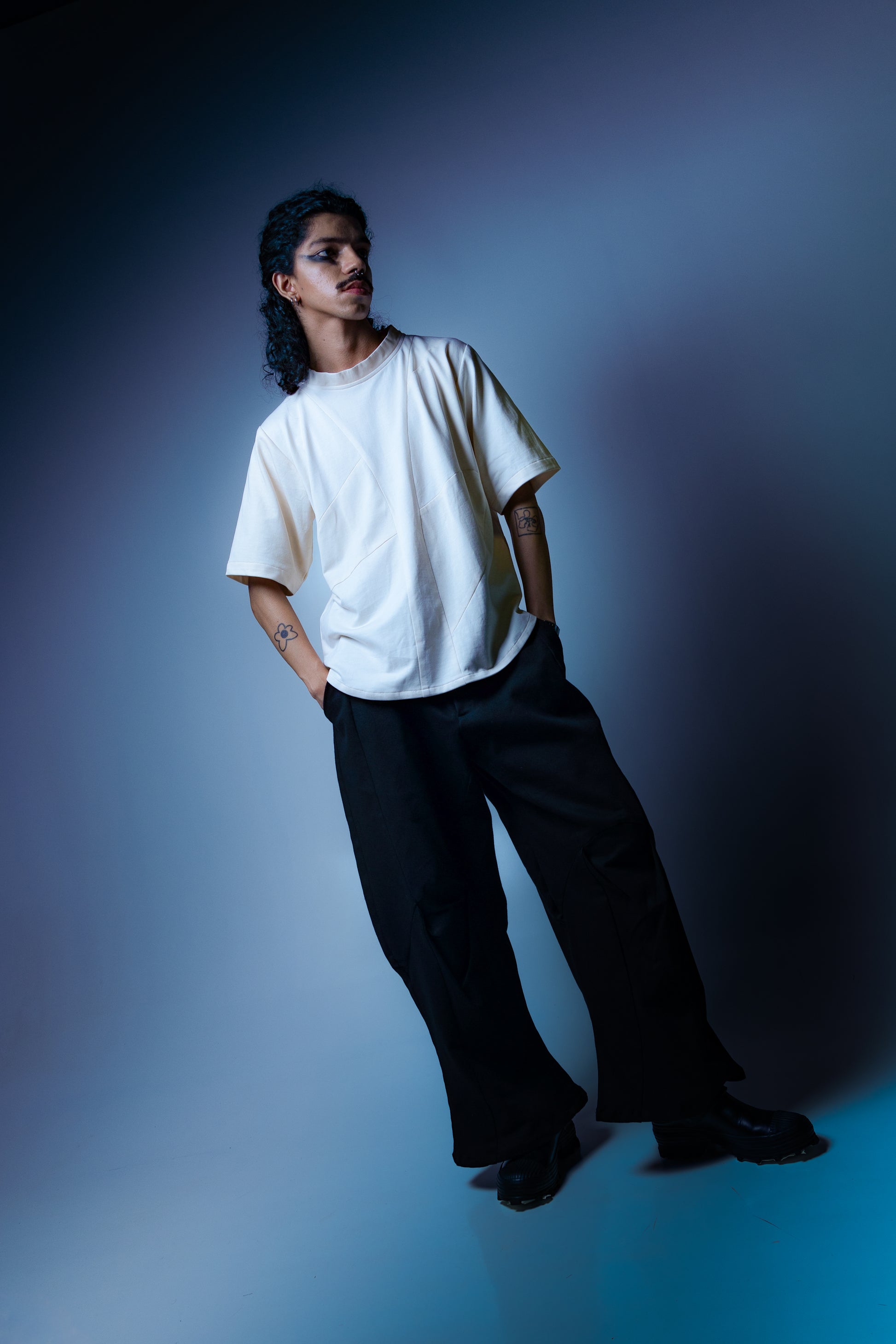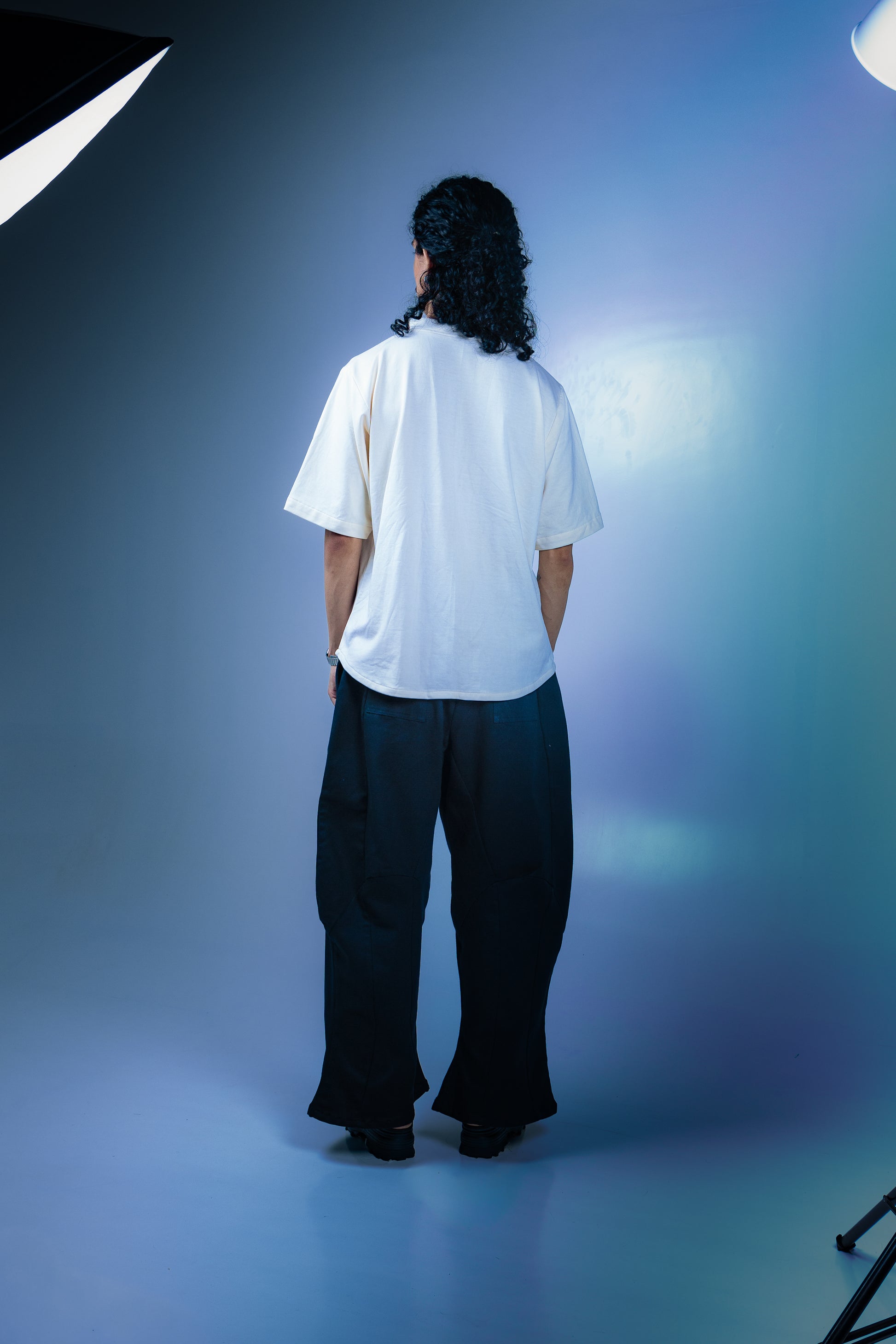 Inspired by baseball jerseys, this short-sleeved garment has a curved dart along its chest in order to create embellishment. The stitched placket has no buttons and extends into the collar seamlessly. Made using 100% textured cotton.